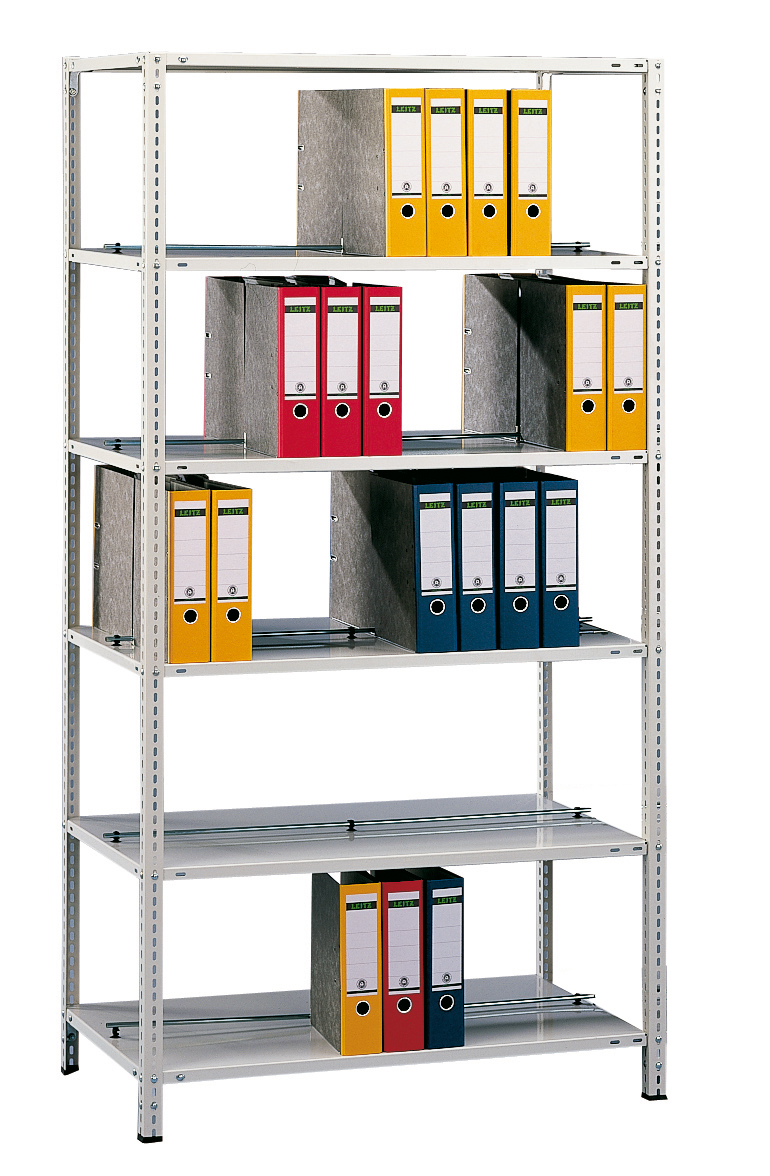 - Auf Wunsch mit Anschlagsleiste um ein Herausfallen des Archivgutes nach hinten zu verhindern